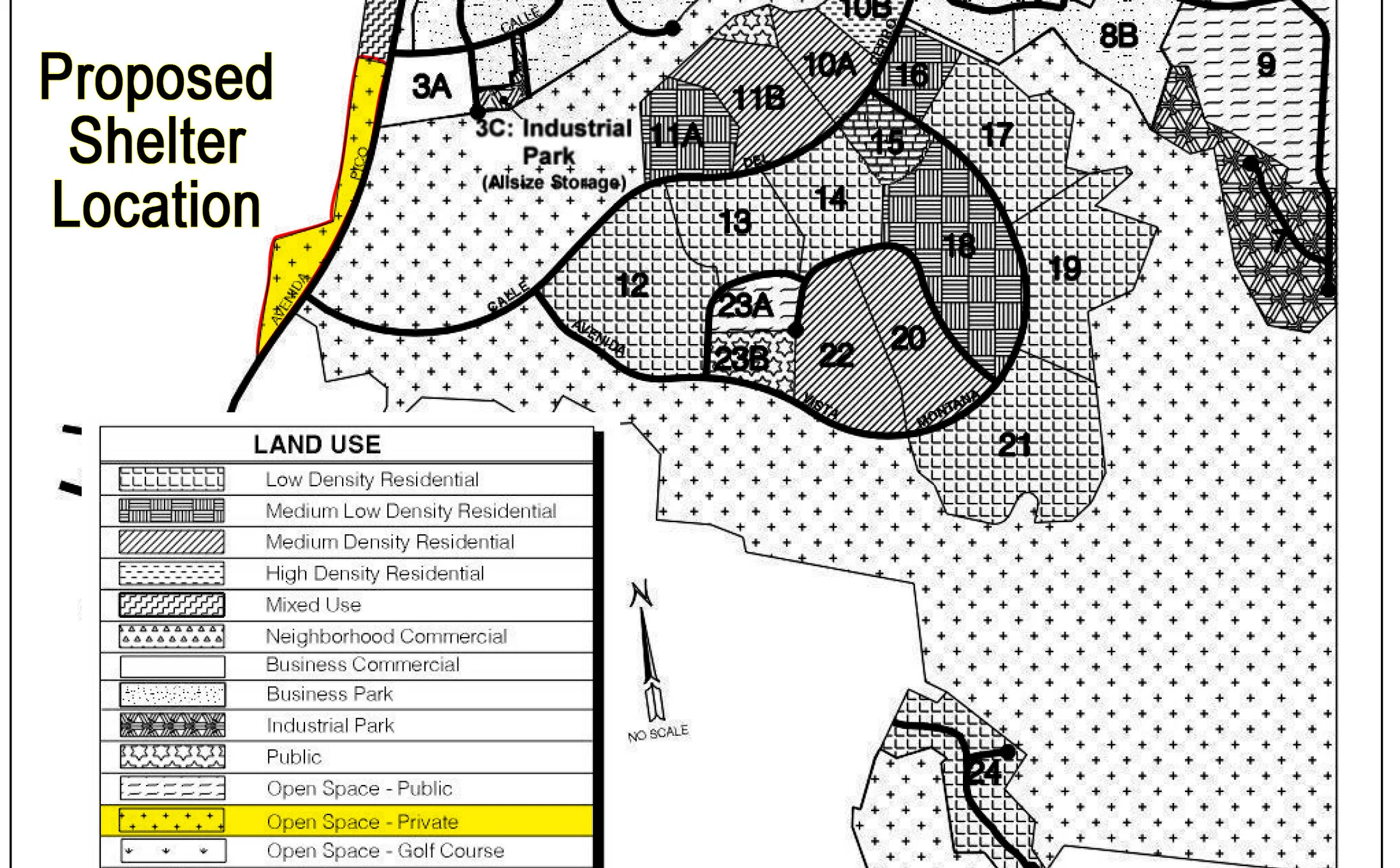 Zoning Map Showing Proposed Shelter Location in “Open Space - Private” Zone.