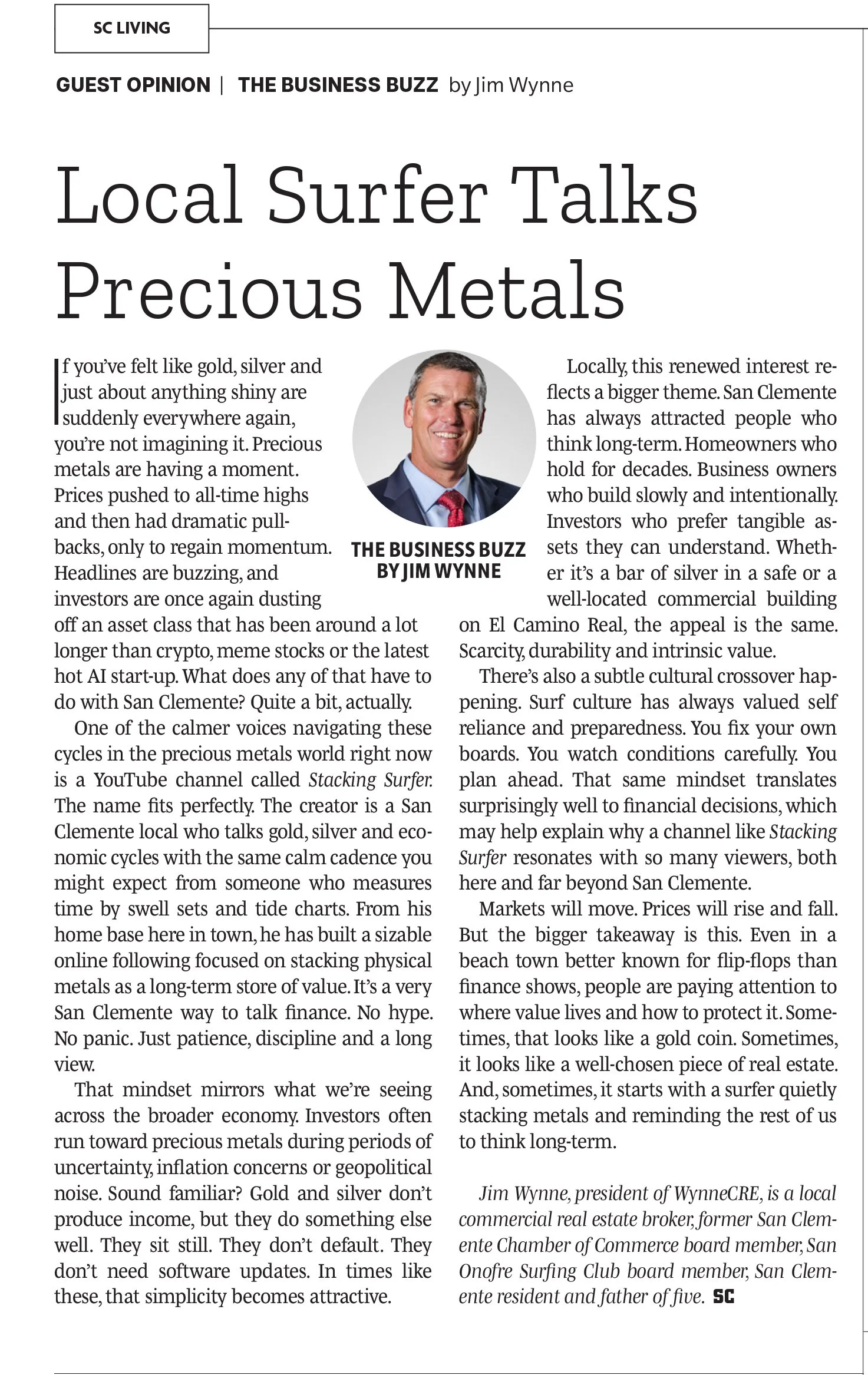 James Wynne February 18, 2026 by Jim Wynne SC Times Article "Local Surfer Talks Precious Metals" James Wynne February 18, 2026 by Jim Wynne